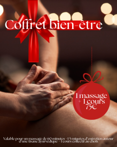 Pour les fêtes, nous avons réuni deux piliers du bien-être en un seul coffret ultra-complet. L’offre Yoga + Massage à 75€ est conçue pour offrir un moment de relaxation profonde, de l’intérieur vers l’extérieur. C’est le cadeau parfait pour toute personne qui a besoin de ralentir et de recharger ses batteries.